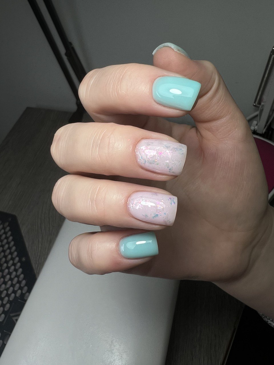 Die Dienstleistung umfasst: Entfernung des alten Materials, Nagelhautbehandlung und Gel oder Gel-Lack-Beschichtung mit Verstärkung.